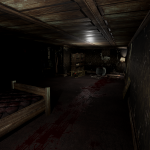 After the initial tutorial section, I needed to keep pushing the Player towards the Main Hall with little to no text and strictly through sign-posting/invisible hand design. As the Player ascended the ladder from the Storage Room they started in, they arrive in a blood-stained Bedroom. The blood trail was added to draw the Player’s eye towards the nearby bed where they could find another note to help unfold the overarching story of Split/Edit. Additionally, getting the Player to move to this location meant that they’d see the door leading out of the room almost as soon as they turn around.