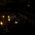 This was done by making the Main Hall very open and well lit with both natural (sky lights in the ceiling along with multiple windows along the walls) and artificial (chandeliers, lamps, candles, TVs) lights. The well-lit area in contrast to the dark and mysterious halls of the mansion helped draw the Player in and enforce the idea that the area was safe.