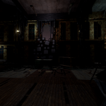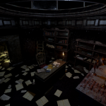 The Study was a room that took some time to design. It’s a small, J-shaped room that doesn’t give the Player a lot of room to move around so I had to find a way to incorporate the horror elements of the rest of the level without relying on combat, chase sequences, or cheap jump scares. I finally settled on an idea where sections of the room would be hidden by fake walls that the Player would initially be unable to move through. These walls will only disappear once the Player overlaps a trigger volume attached to the wall object, meaning I had to find a way to push the Player towards the dead end and then back again once the wall had disappeared.