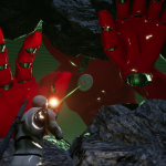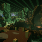 The most difficult and exciting section of the caves is in the middle section of the system. Once through the traversal/maze-like section at the start, Players are presented with a large, open room filled with colossal monsters trapped within the rocks that make up the cave. These are the monsters that were hinted at/showcased at the very start of the level when Players spawn in, but they’re now able to reach out and grab at Players as they navigate through the area. Players need to be constantly aware of their surroundings as they traverse through this section as not every monster is visible and any gap or hole they pass may result in being grabbed by one of these monsters if they’re not careful. In addition to these large hazards, Players can also discover higher rarity loot if they take the time to explore this section.