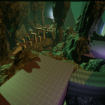 With the general layout of the Chasm complete, I spent another chunk of development time on fleshing out the space and giving it a bit more character with structures/areas to explore as well as complete a first pass of Enemy AI placement. One of the more obvious additions to the Chasm section was the large burial ground building/temple that houses a large monster’s skeleton. This eye-catching set piece was used in a variety of ways within the space, allowing Players to utilize the bones as cover to hide from or lure Enemy AI around, as well as be used as platforms to let Players reach some valuable loot hidden throughout the burial ground or pick off Enemy AI from a safe distance.